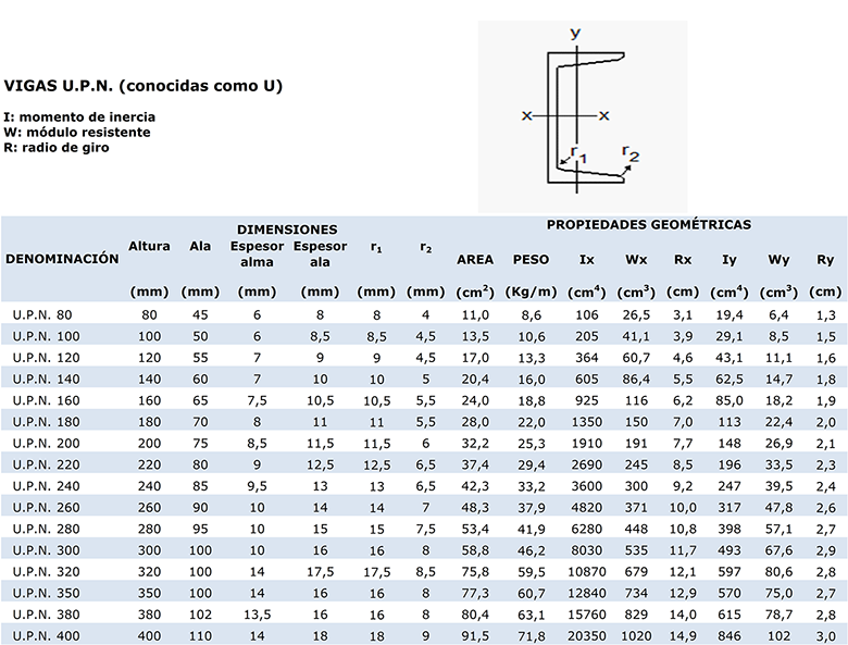 Contamos con un stock permanente de IPN y UPN hasta 300 mm y U chico en 40x20 mm, 50x25 mm, 50x38 mm, 60x30 mm y 64x42 mm. Medidas superiores se traen por encargue, con demora de 1 o 2 días.